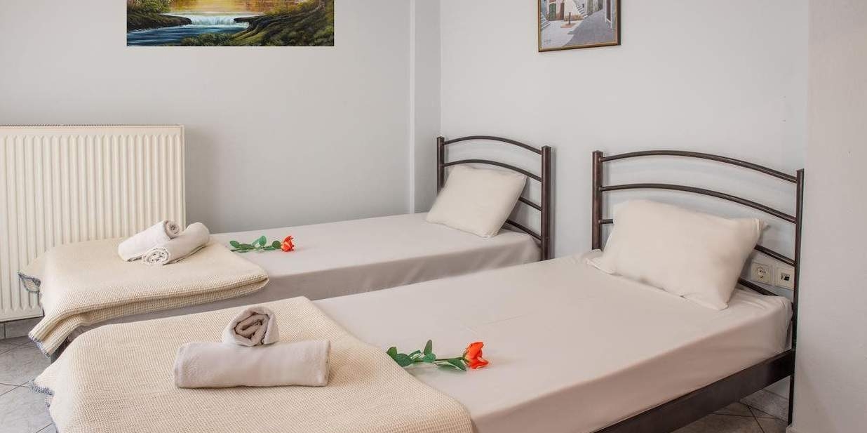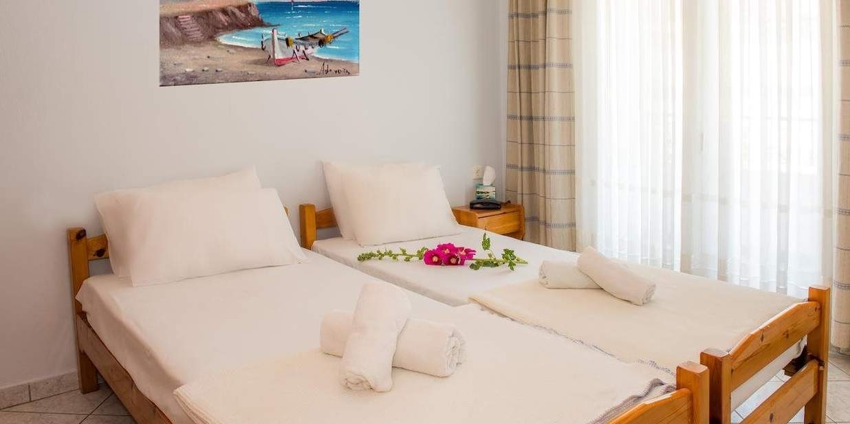Хотел Мелбурн се наоѓа на 250м од плажа. Располага со 1/4 апартмани кои се опремени со одвоена спална (со брачен кревет или два одвоени кревети) и кујна во која има дополнително има една или две софи кои се пуштаат и купатило. На најгорниот кат хотелот има и 1/2 соби (без кујна) кои имаат сопствено купатило, клима, телевизор и фрижидер. За новата летна сезона ќе се направат нови двокреветни студија со кујна на призмеје кои ќе бидат готови до април 2026. Сите соби имаат ТВ, клима уред, Wi-Fi и тераса. Хотелот има и лифт.