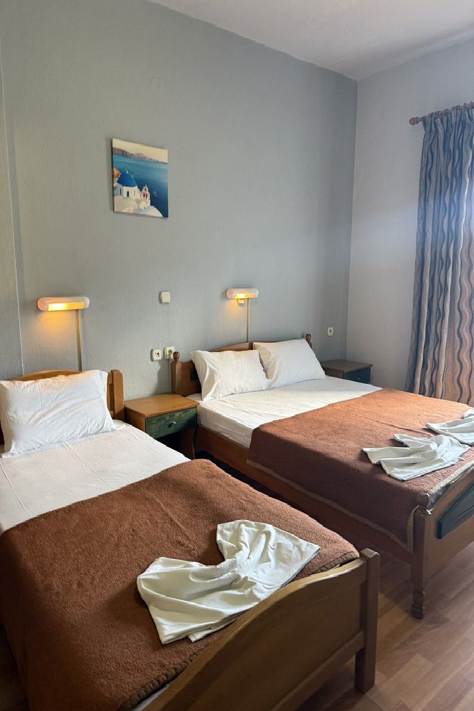 - Бр.1; ДВОКРЕВЕТНО (1/2) СТУДИО; Два споени моно кревети, комплетна кујна, ТВЦ, ТВ, тераса со ТЕНДА напред (запад – правец Олимп); приземје;