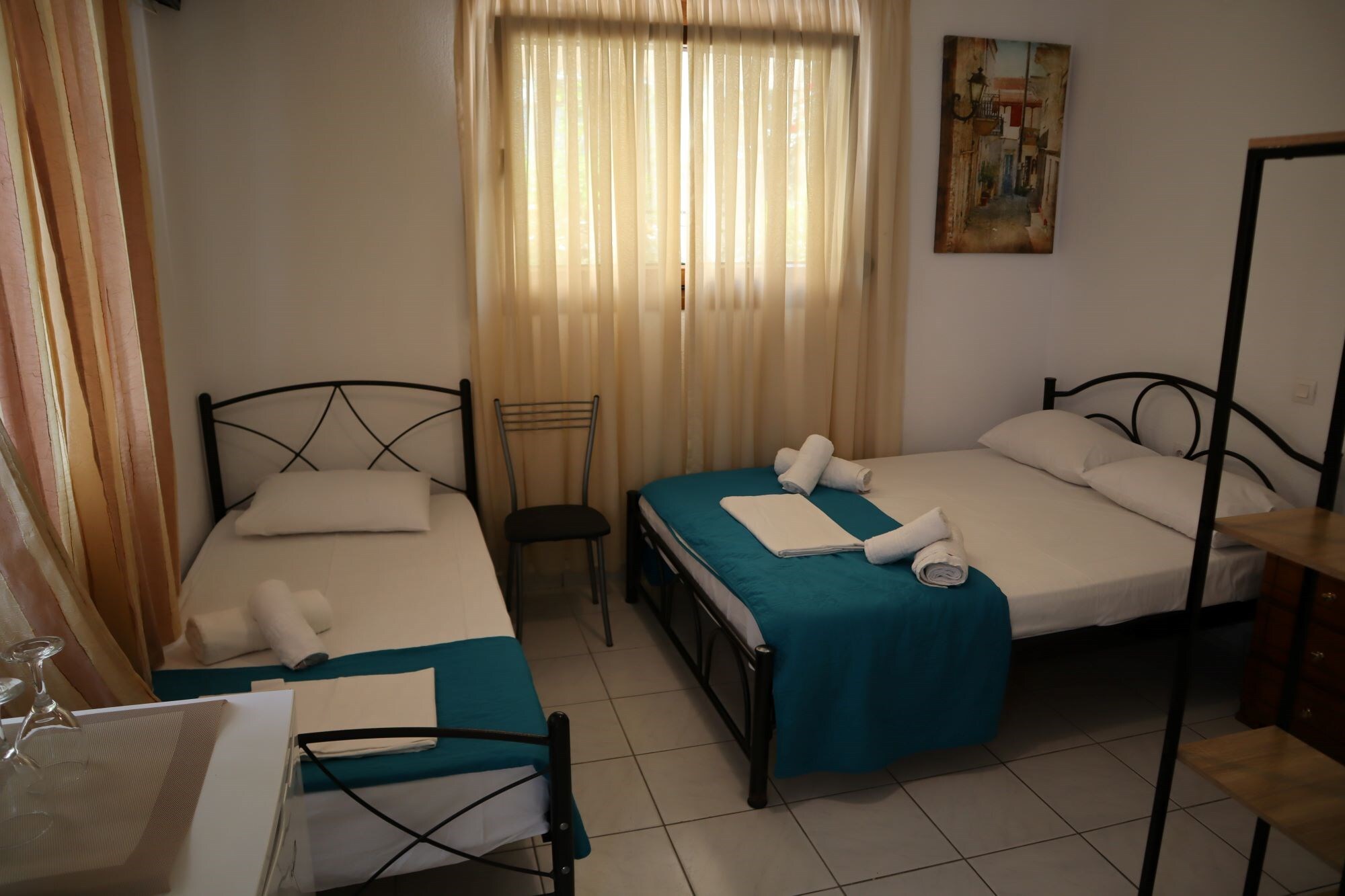 Трокреветните соби се со еден брачен и еден единечен кревет. Секоја соба има сопствено купатило, ТВ, мини фрижидер и клима уред (со доплата). Двете трокреветни соби имаат заеднички влез во кој се наоѓа кујна и истата е заедничка за тие две соби.