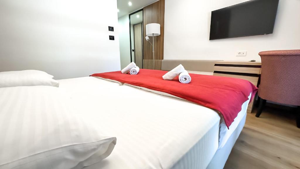 Хотел ”Словенска плажа” 4* – сместен на сама Словенска плажа, со сопствен паркинг: 1/2,1/3 и 1/4 соби, секоја со twc, тв, wi-fi. бесплатно користење на отворениот базен.